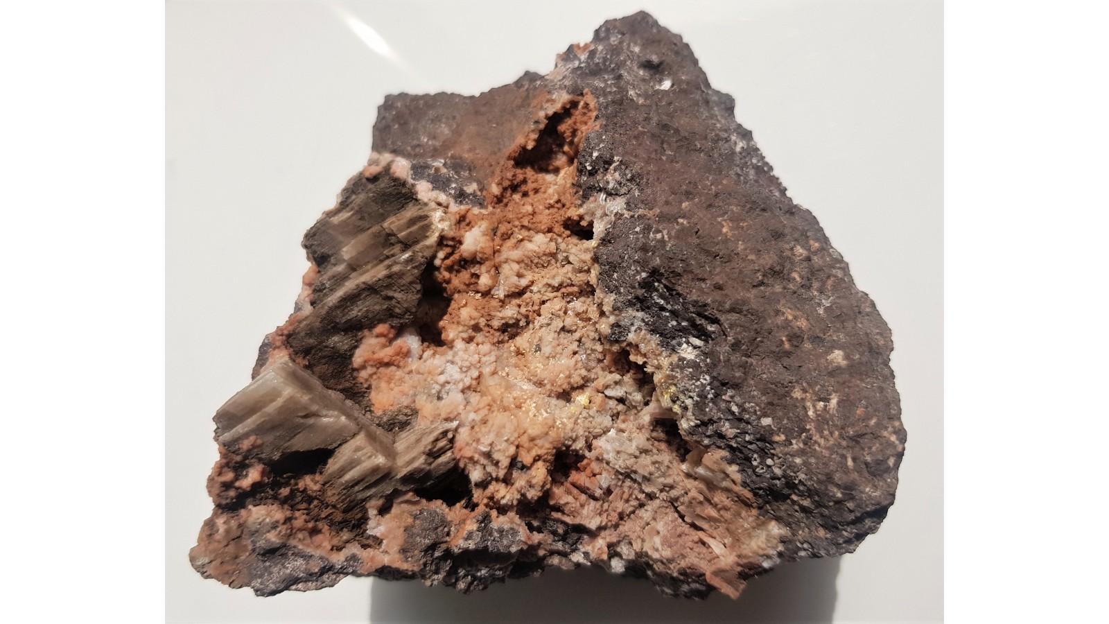 Absolutnie unikatowe okazy epistilbitu z pustek melafirów migdałowcowych z okolic Suszyny - Kamieńca w Sudetach. Epistilbit w formie różowawych, "kalafiorowatych" zrostów niezwietrzałych kryształów. Wypełnia duże pustki, kawerny w melafirze. Atrakcyjny, różowy kolor i forma występowania minerału. Okaz ze strefy z bogatą mineralizacją, już wyeksploatowanej. Łącznie około 30 znalezionych okazów. Okazy tego typu były opisywane wcześniej przez mineralogów niemieckich z tej okolicy, potem całkowicie nieobecne w obrocie kolekcjonerskim. Szczególnie polecam zaawansowanym kolekcjonerom.