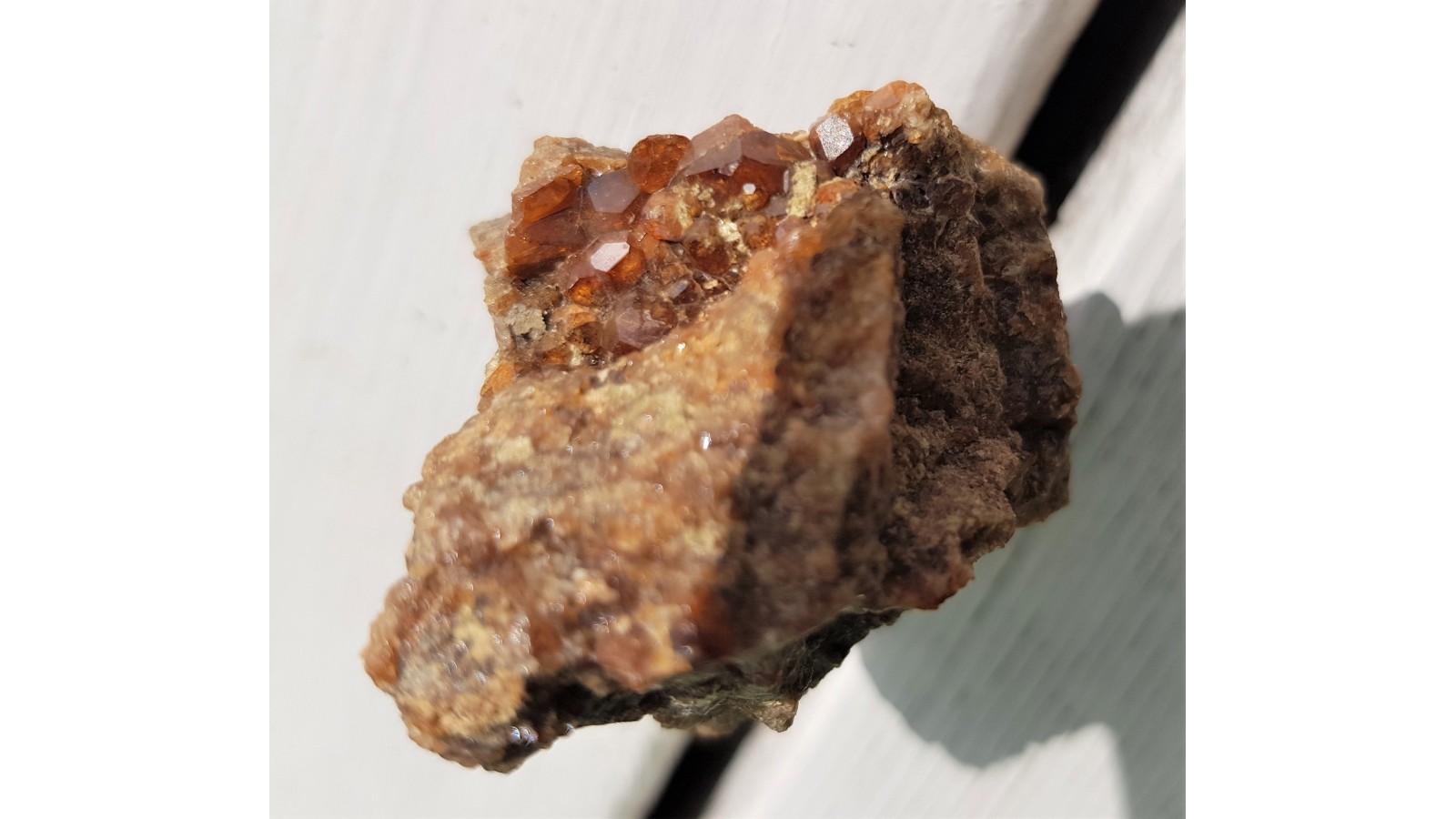 Szczotka idealnie wykształconych, nieuszkodzonych kryształów granatów o bardzo silnym połysku z historycznej i obecnie już zrekultywowanej, całkowicie niedostępnej lokalizacji. Skarn na kontakcie wapieni i granitów masywu Strzelina. Granaty przezroczyste, niespękane, jakości jubilerskiej. Doskonały okaz wysokiej klasy. Polecam.