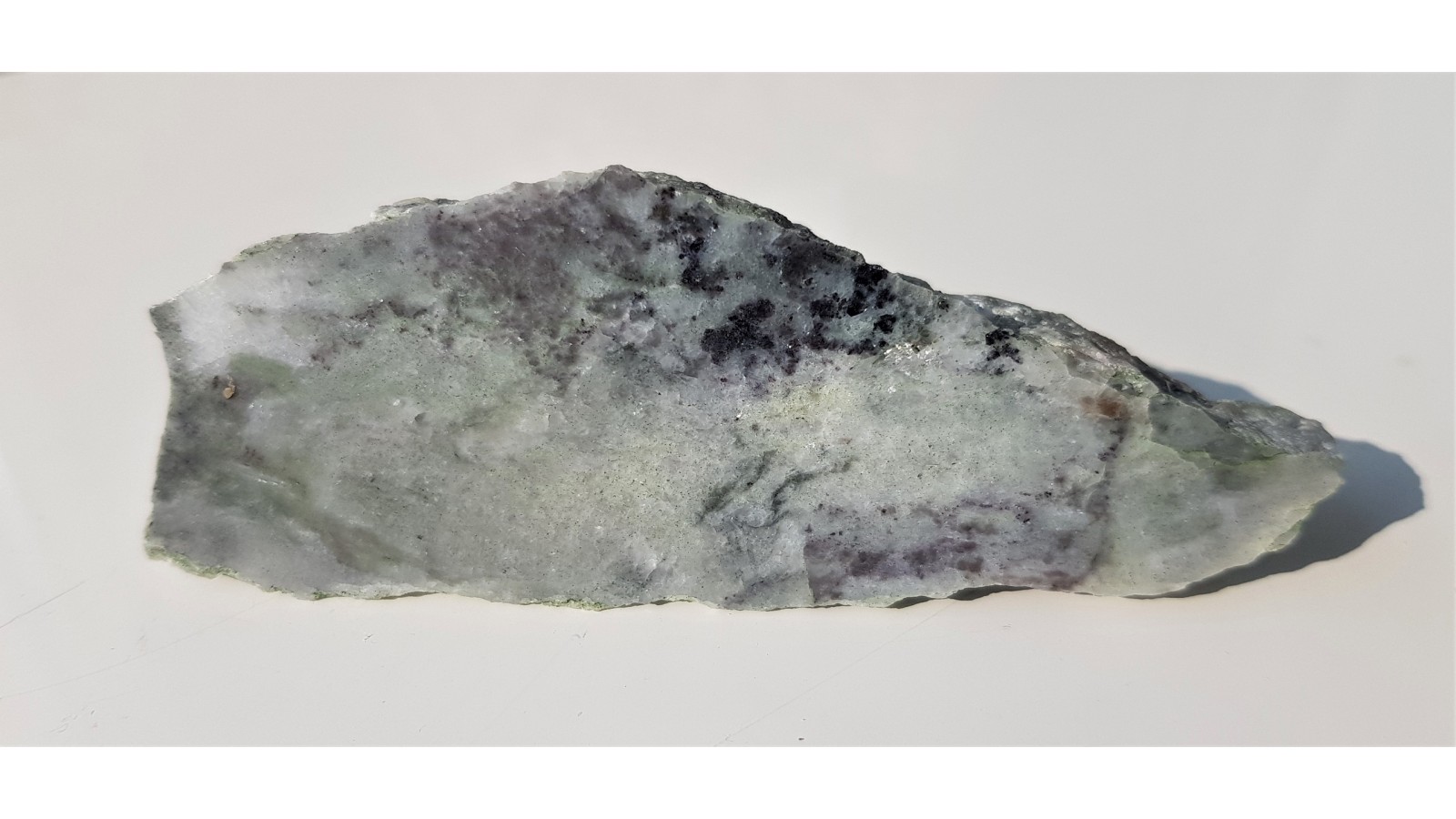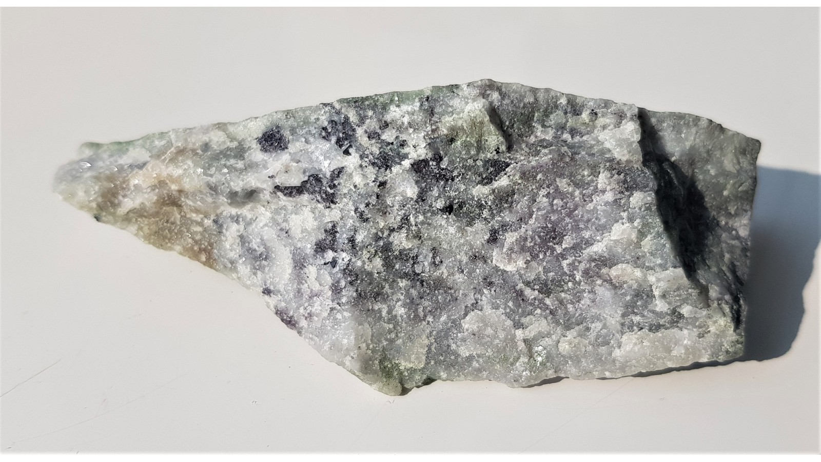 Okaz marmuru dolomitowego z kryształkami fioletowych spienli właściwych (Mg, Al). Ciekawostka mineralogiczna z Sudetów. Jedyne opisane miejsce występowania spineli właściwych in situ w Sudetach (Przegląd Geologiczny 10/2019). Okaz polerowany z jednej strony. Z przeciwnej, niepolerowanej, widoczne kryształki dobrze wykształconego spinelu.