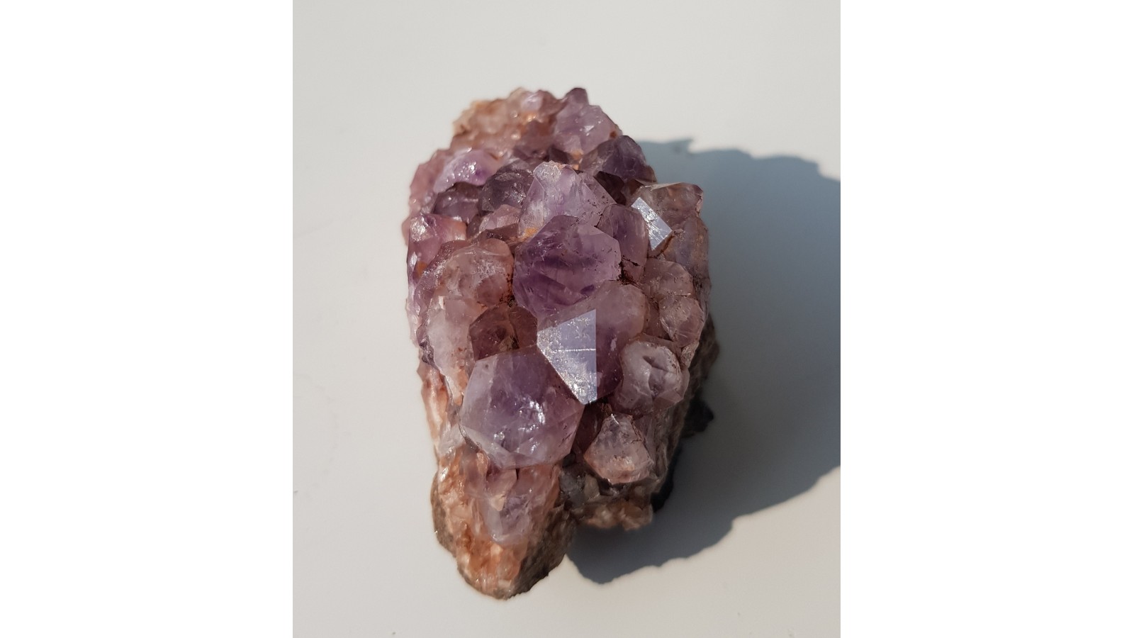 Niewielka szczotka idealnie wykształconych ametystów o silnym połysku i bardzo dobrej barwie. Okaz z klasycznej lokalizacji. Polecam.