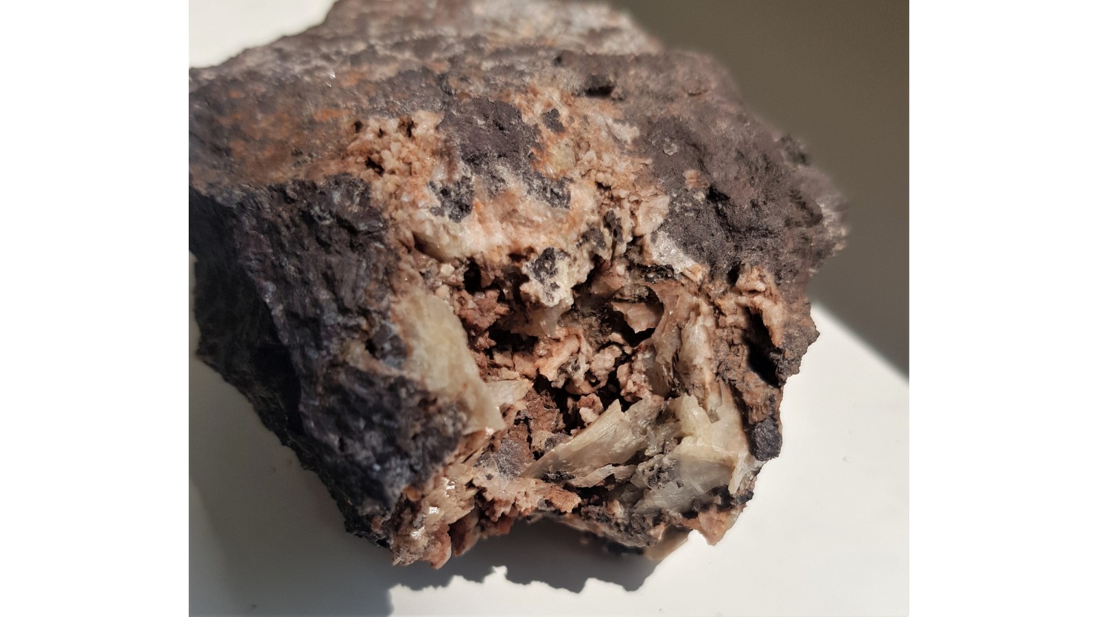 Dobrze wykształcone kryształy heulandytu w kawernowatym melafirze z okolic Suszyny - Mrówieńca k. Kłodzka. Rzadkość mineralogiczna. Polecam.