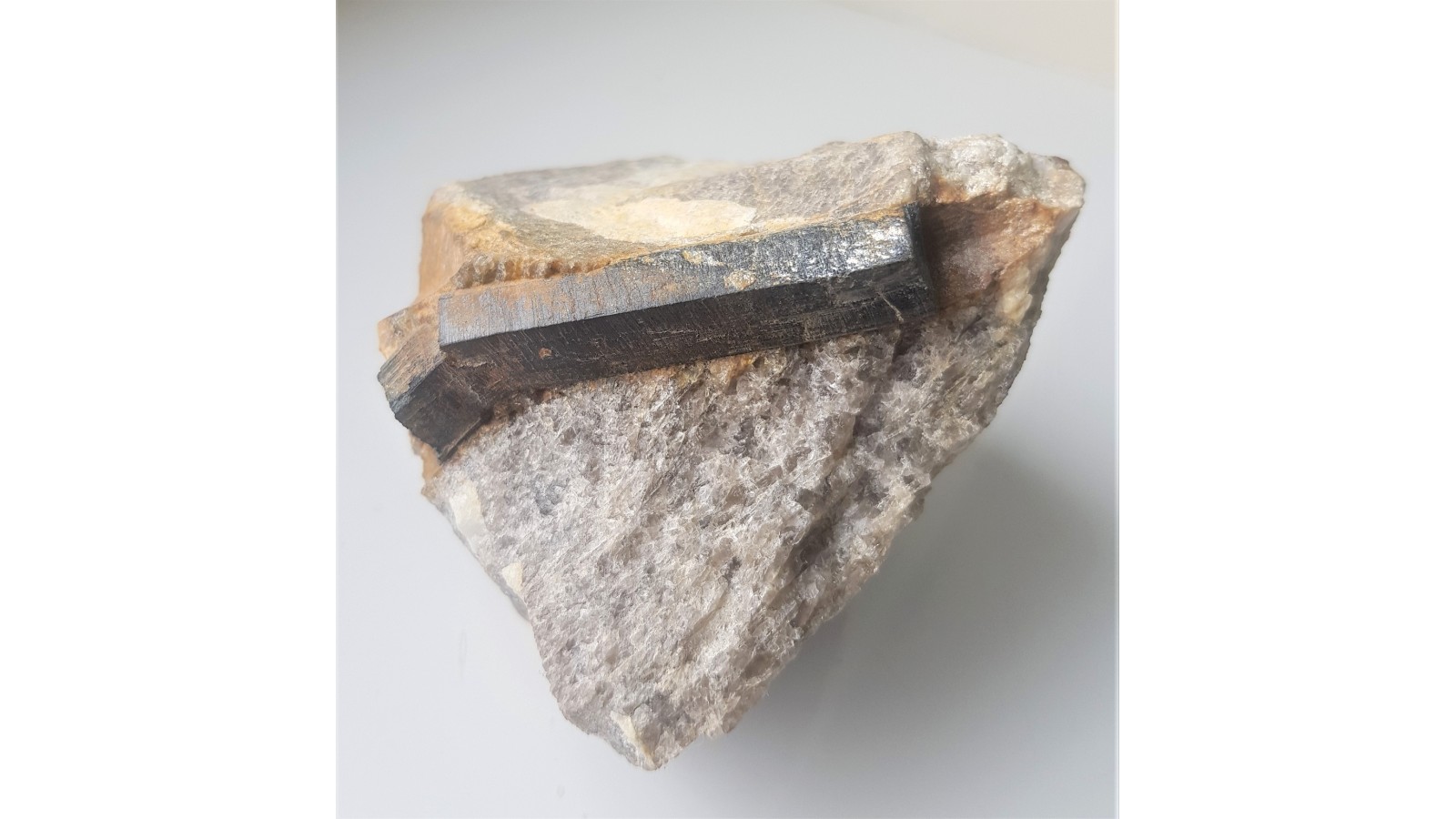Masywny, nie kruchy, solidny, duży kryształ szerlu z ładnym połyskiem, wrośnięty w kwarc pegmatytowy z Piławy Grn. w bloku sowiogórskim. Polecam.