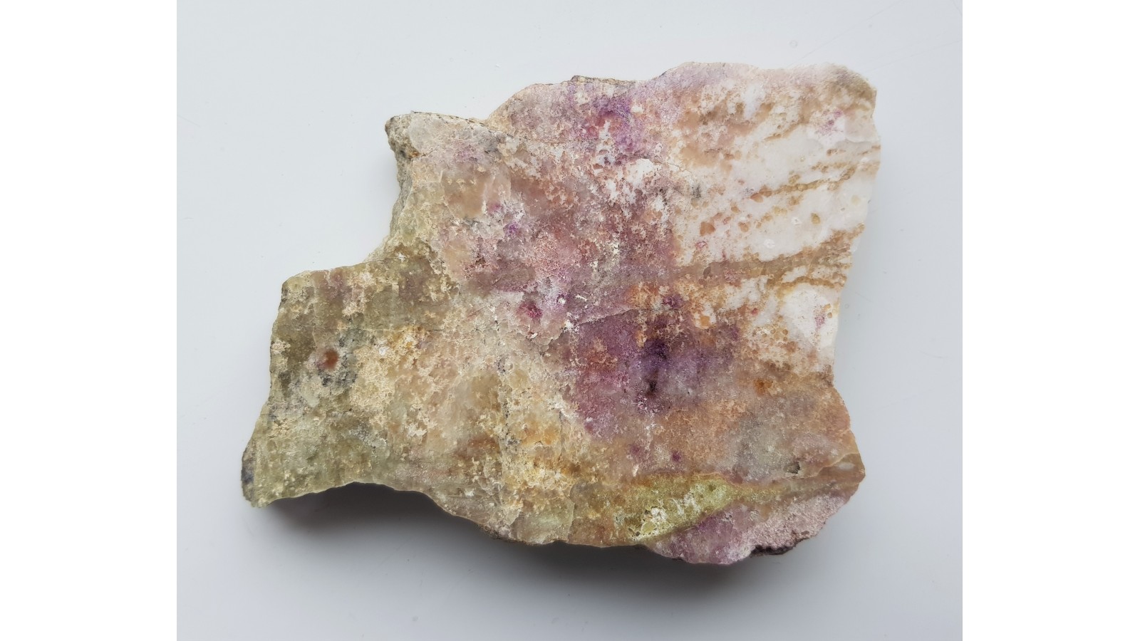 Okaz intensywnie zabarwionego rodingitu z Jordanowa Śląskiego. Skała biało-różowo-zielona. Idealny poler. Tył naturalny - nie cięty. Polecam.