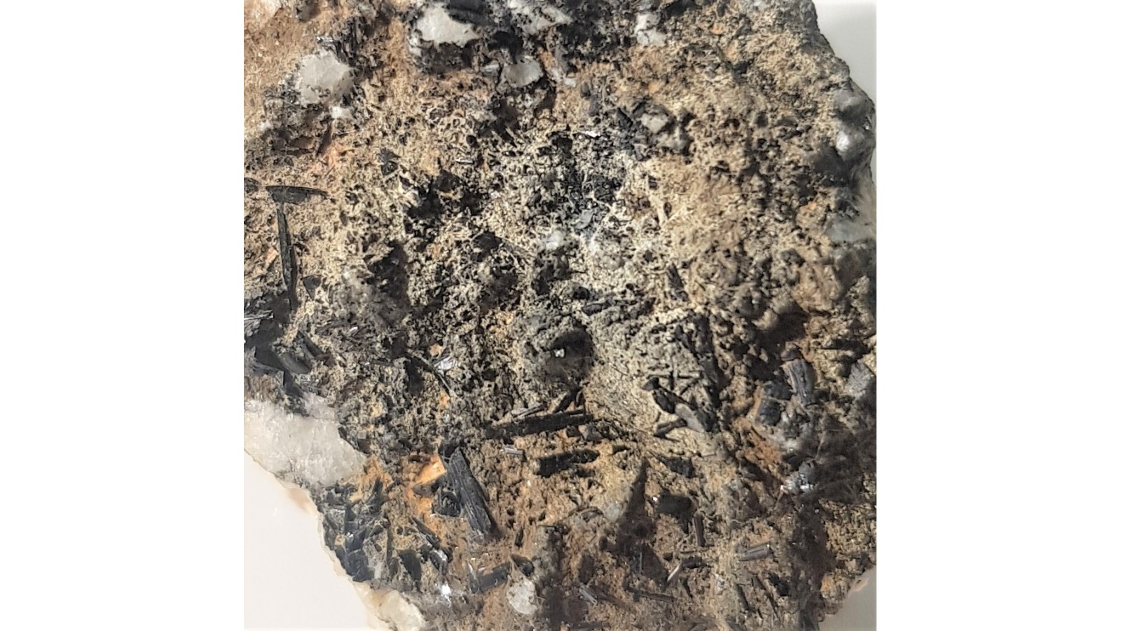 Tourmalines on feldspar druse from Sudetes (Poland)