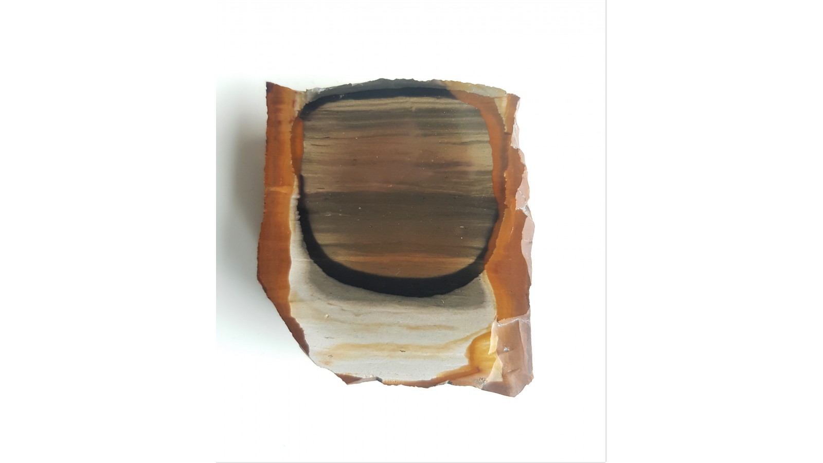 Poleorwany okaz neogeńskiego limnokwarcytu ze światowej sławy odsłonięcia w okolicach miejscowości Banske na Słowacji. Wspaniały kamień, piękny, kontrastowy deseń, brak spękań, doskonały poler. Kamień używany w jubilerstwie. Dosyć duży okaz, co jest rzadkością.