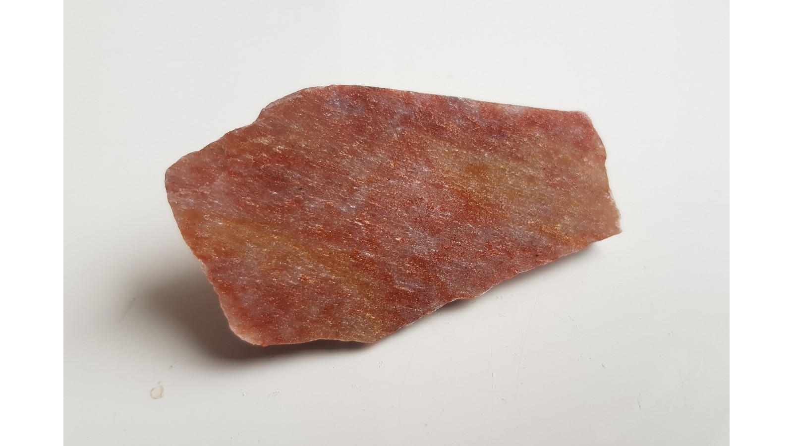 Polerowana płytka intensywnie świecącego awenturynu z wyjątkowego znaleziska w Jegłowej. Znalezisko sprzed około 10-ciu lat. Okazy z dawnych hałd z okolicy wyrobiska łupków kwarcytowych. Znalezisko autorskie, słabo znane wśród kolekcjonerów i pasjonatów kamieni odzobnych Sudetów.