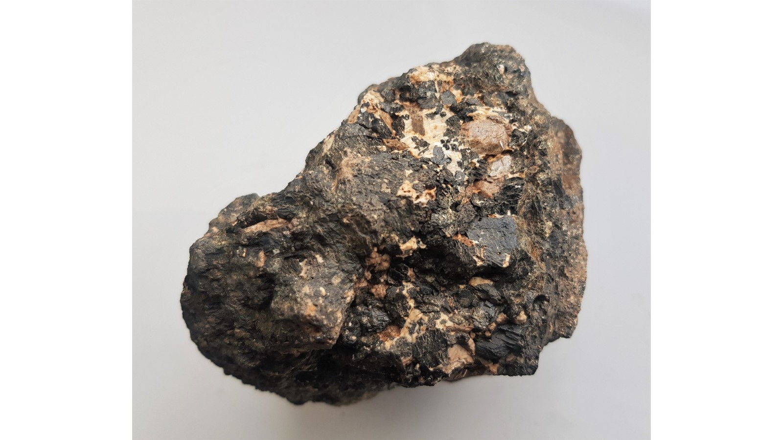 Kryształy tytanitu w grubokrystalicznym amfibolicie z Gór Sowich