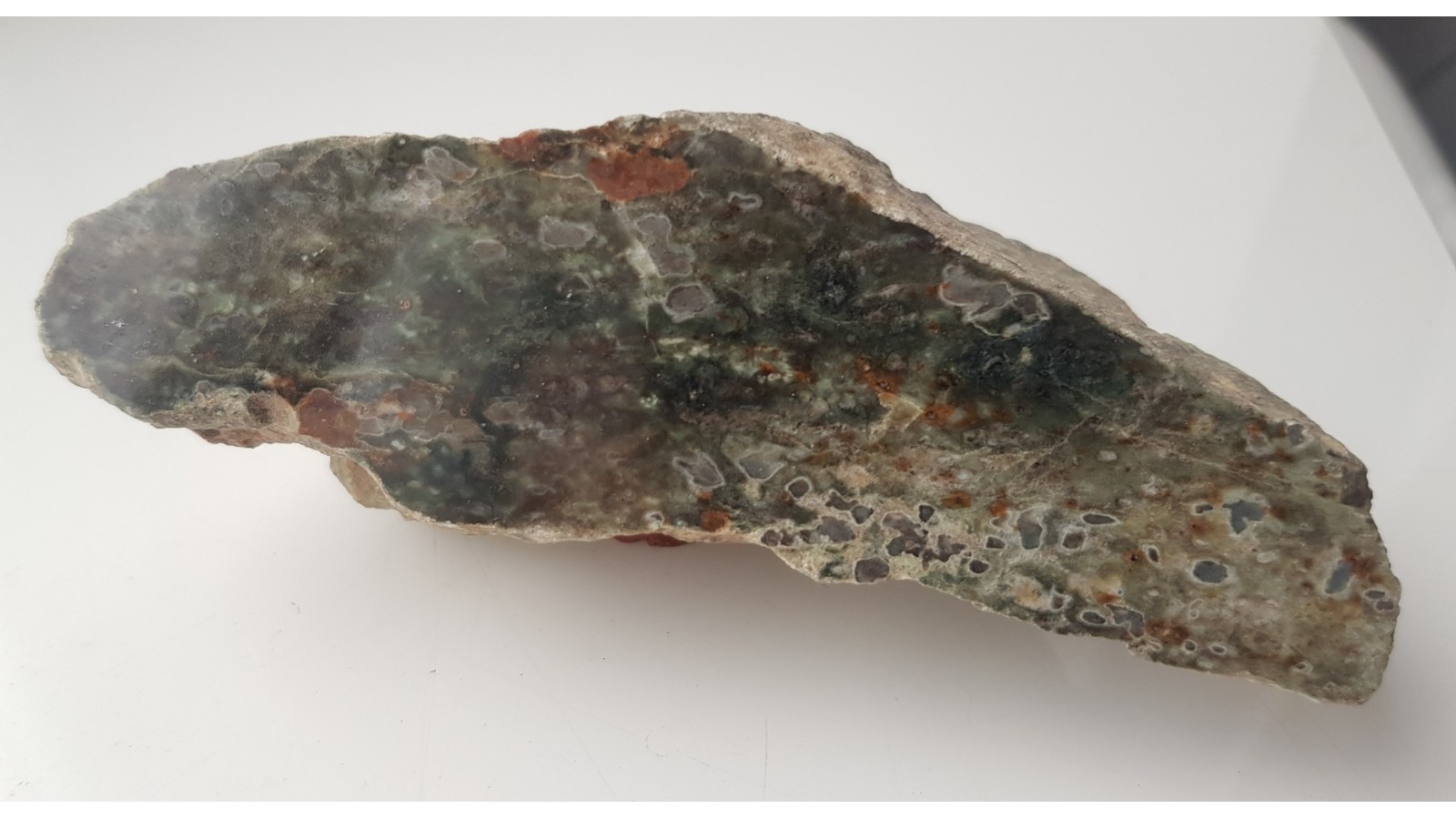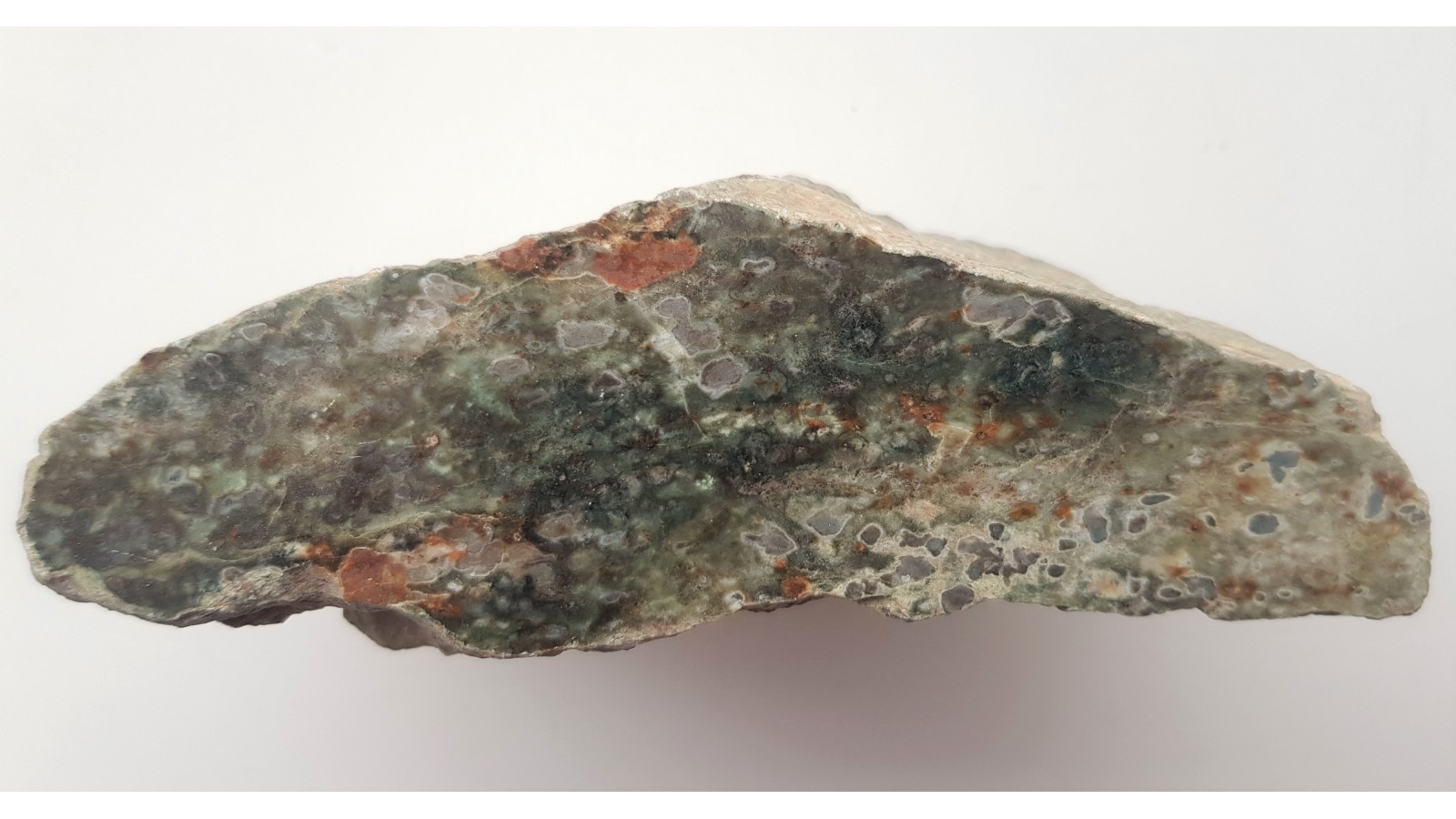 Polerowany okaz eklogitu z klasycznej, już niedostępnej (pomnik przyrody) lokalizacji - kamieniołomu gnejsu we wsi Włóki k. Dzierżoniowa. Eklogity tworzyły tam wkładki w gnejsach. Okaz pozyskany przed wielu laty, w okresie, gdy kamieniołom był całkowicie zarzucony. Polecam.