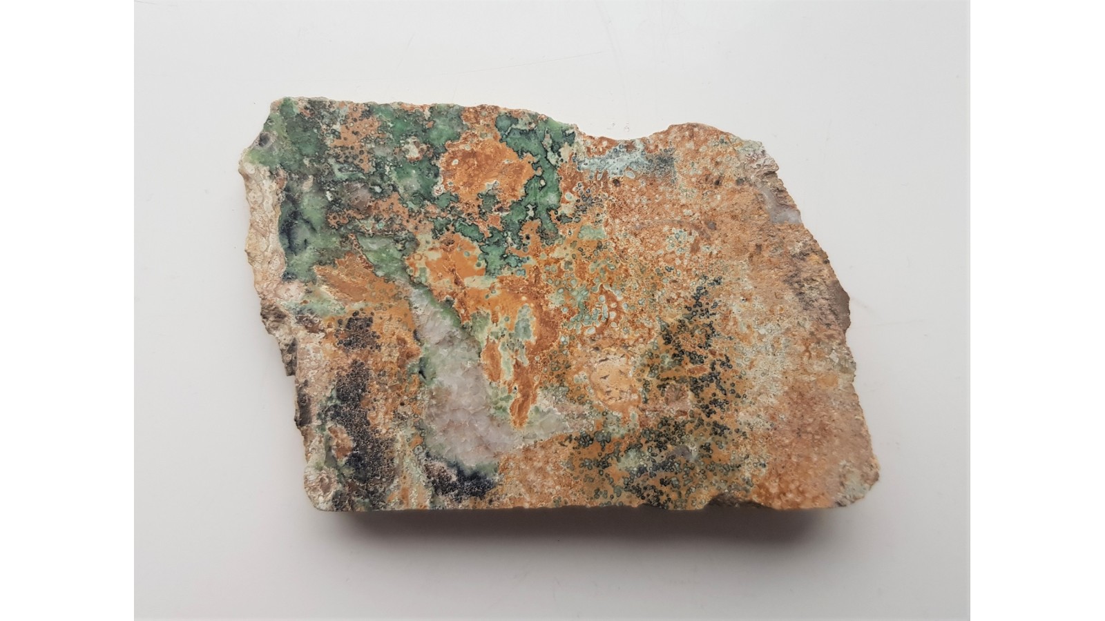 Polerowany okaz wavellitu/waryscytu z Pustkowa Wilczkowskiego koło Wrocławia. Impregnacja w sylurskim łupku grafitowym, w których znajdują się wystąpienia turkusu oraz rzadko wavellitu i waryscytu. Okaz z jednej strony polerowany. Ciekawy, zatokowy deseń w efekcie intersekcji koloidalnych skupień ww. minerałów. Rzadko występujące okazy z tej lokalizacji. Polecam.