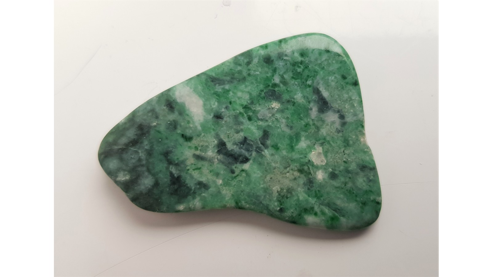 Płaski bębniak z naturalnego jadeitu z lokalizacji Itmurundy na stepie w pobliżu jeziora Bałchasz w Kazachstanie. Pięknie, intensywnie zabarwiony. Złoże jadeitu w serpentynitach razem z tzw. kwarcem lodowym. Rzadkość, polecam.
