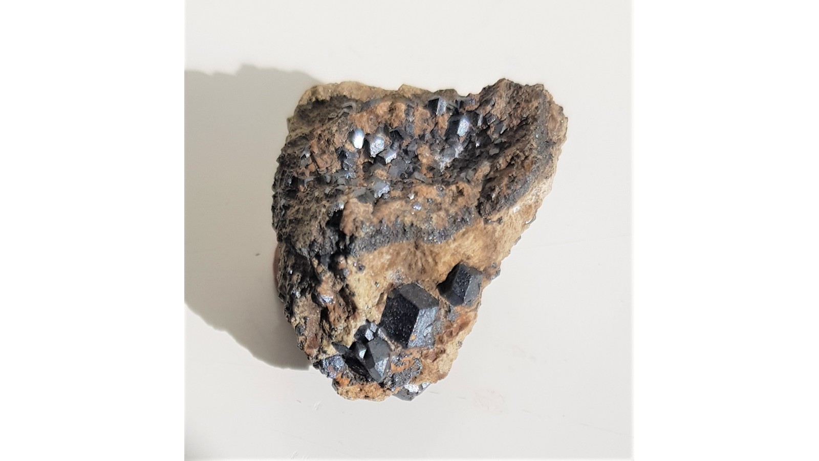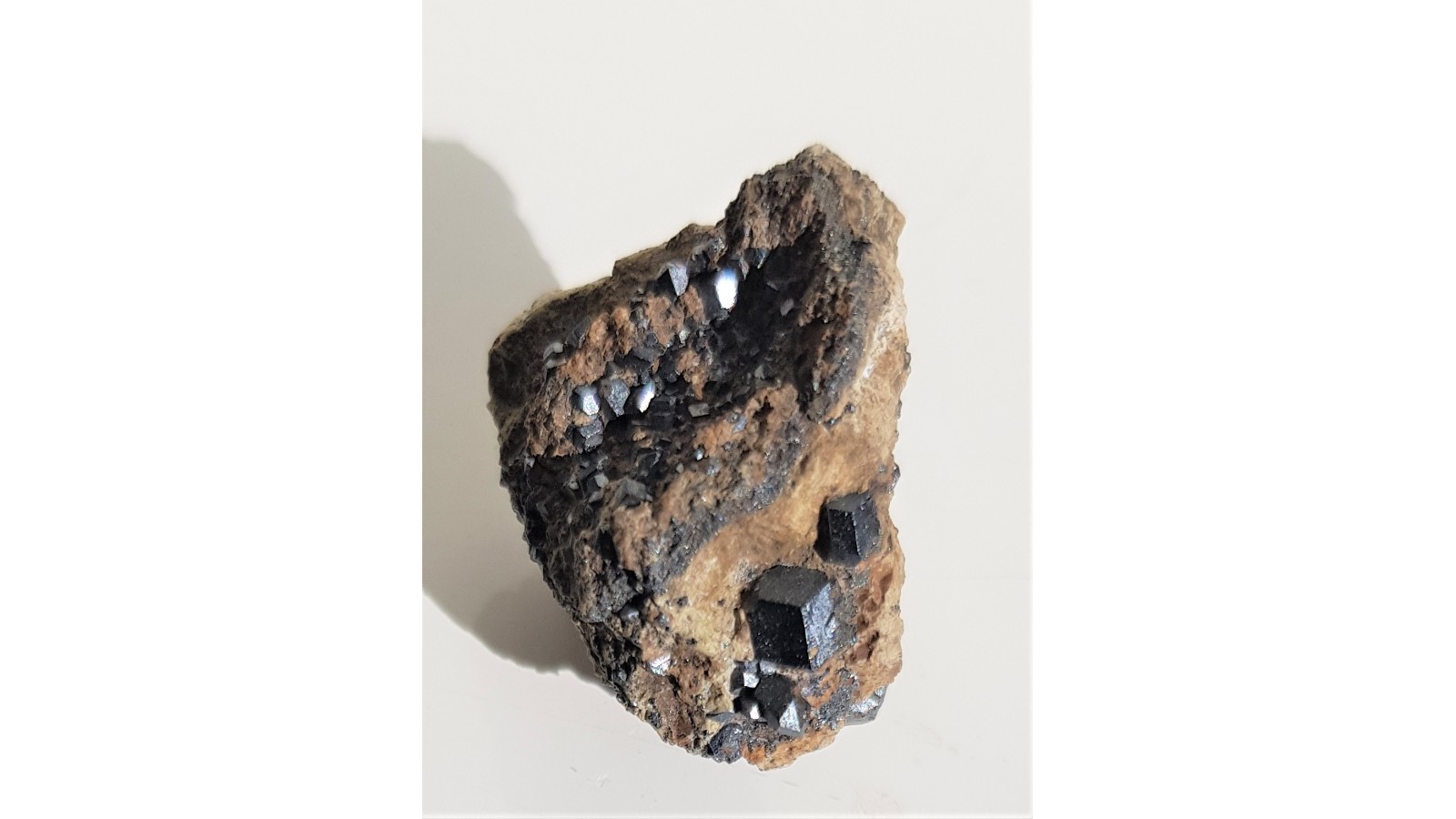 Pięknie, idealnie wykształcone kryształy magnetytu z Miedzianki k. Janowic Wlk. w skale macierzystej. Niewielki okaz, idealnie wykształcony, bardzo estetyczny, polecam.